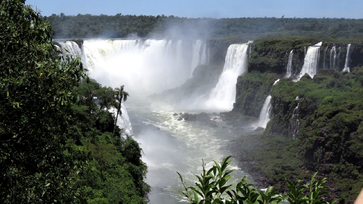 Wodospady Iguazú to cud natury, ktory nie ma w sobie rownego na swiecie. Sklada sie z 20 wiekszych i 255 mniejszych wodospadow, rozrzuconych na dlugosci 2,7 km. Niektore z nich sa wysokie do 82 metry, wiekszosc jednak "tylko" do 64 metrow. Ilosc przeplywajacej wody na sekunde waha sie miedzy 1500 i 7000 metrow szesciennych. Przez wodospady przebiega wzdluz ich krawedzi granica miedzy Argentyna i Brazylia. Poniewaz wiekszosc wodospadow lezy w Argentynie, najpiekniejszy jest widok ze strony brazylijskiej.